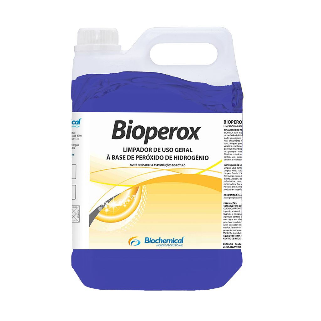Limpador de uso geral à base de Peróxido de Hi-drogênio, extremamente eficiente e seguro, subs-titui em algumas situações os limpa vidros e lim-padores multiuso. Diluição – até 1:200