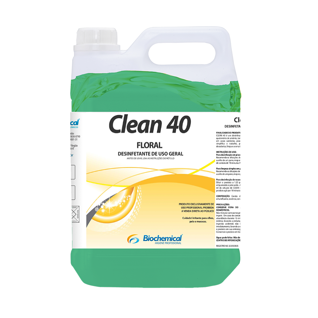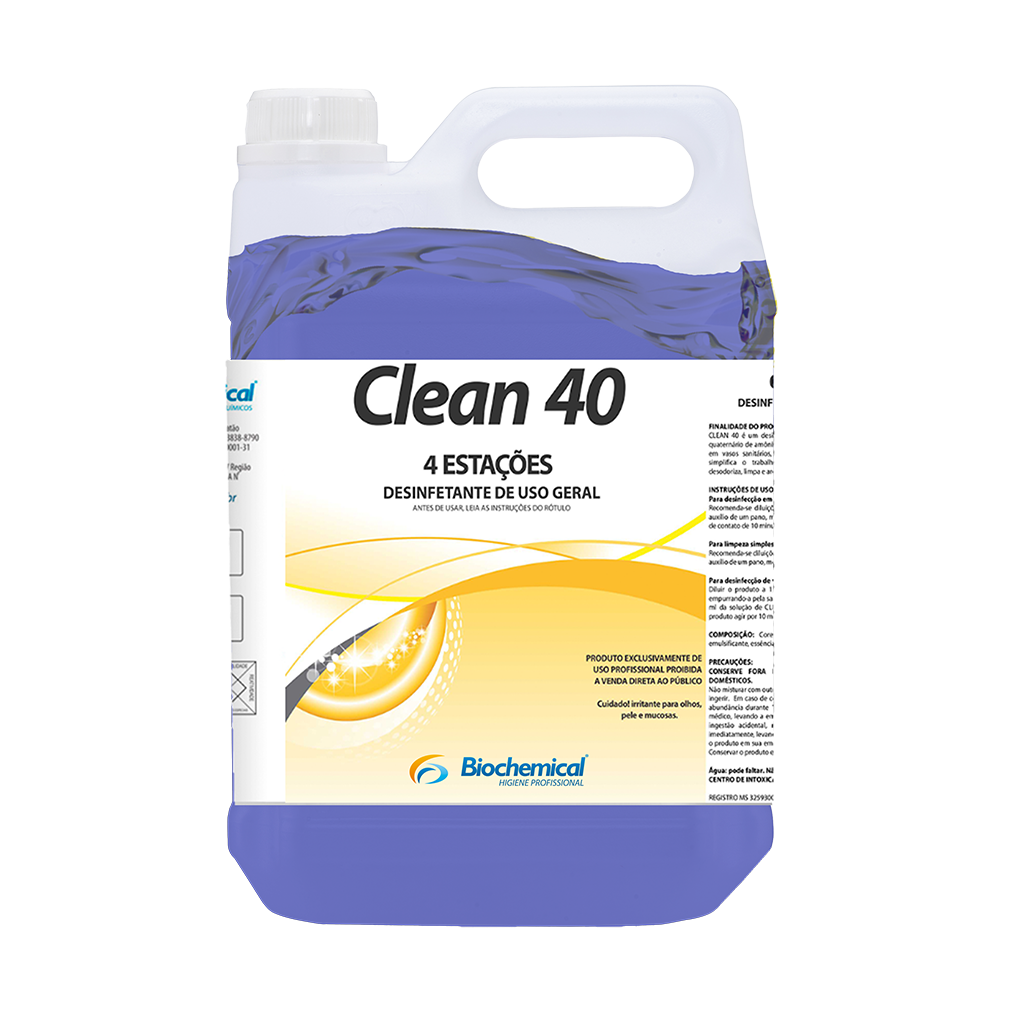 Limpador com ação desinfetante à base de Quaternário de Amônio de 5ª geração. Limpa, desinfeta e odoriza em uma única operação. Produto elaborado com fragrâncias nobres e disponível em 5 versões: 4 Estações / Dowe / Floral / Hibisco e Lavanda. Diluição – até 1:100