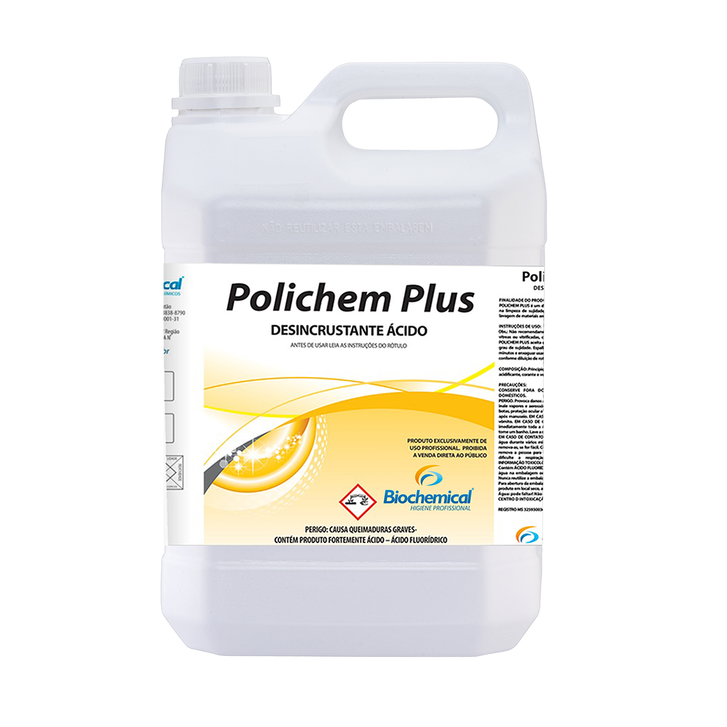 POLICHEM PLUS Limpador de base ácida especial para o clarea-mento em superfícies de alumínio que se encontram embaçadas e sem brilho, escuras e/ou man-chadas. Diluição – até 1:40 Categorias: Limpadores e Detergentes, Limpeza em Geral Produtos relacionados SANICHEM BIOPEROX POLICHEM BR