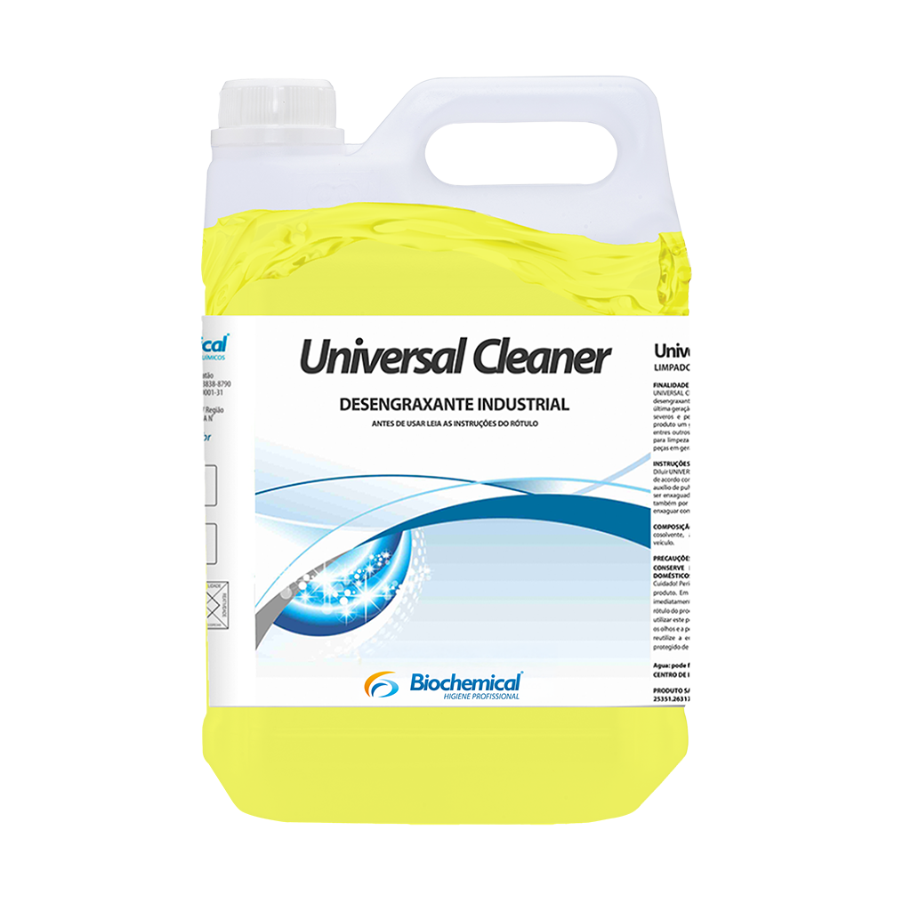 Desengraxante biodegradável de uso geral. Universal Cleaner é uma mistura sintética e natural à base de D’limoneno muito seguro para uso. Possuí agradável odor cítrico proporcionado por seus próprios ativos. Ótima relação entre custo e benefício. Diluição – até 1:50